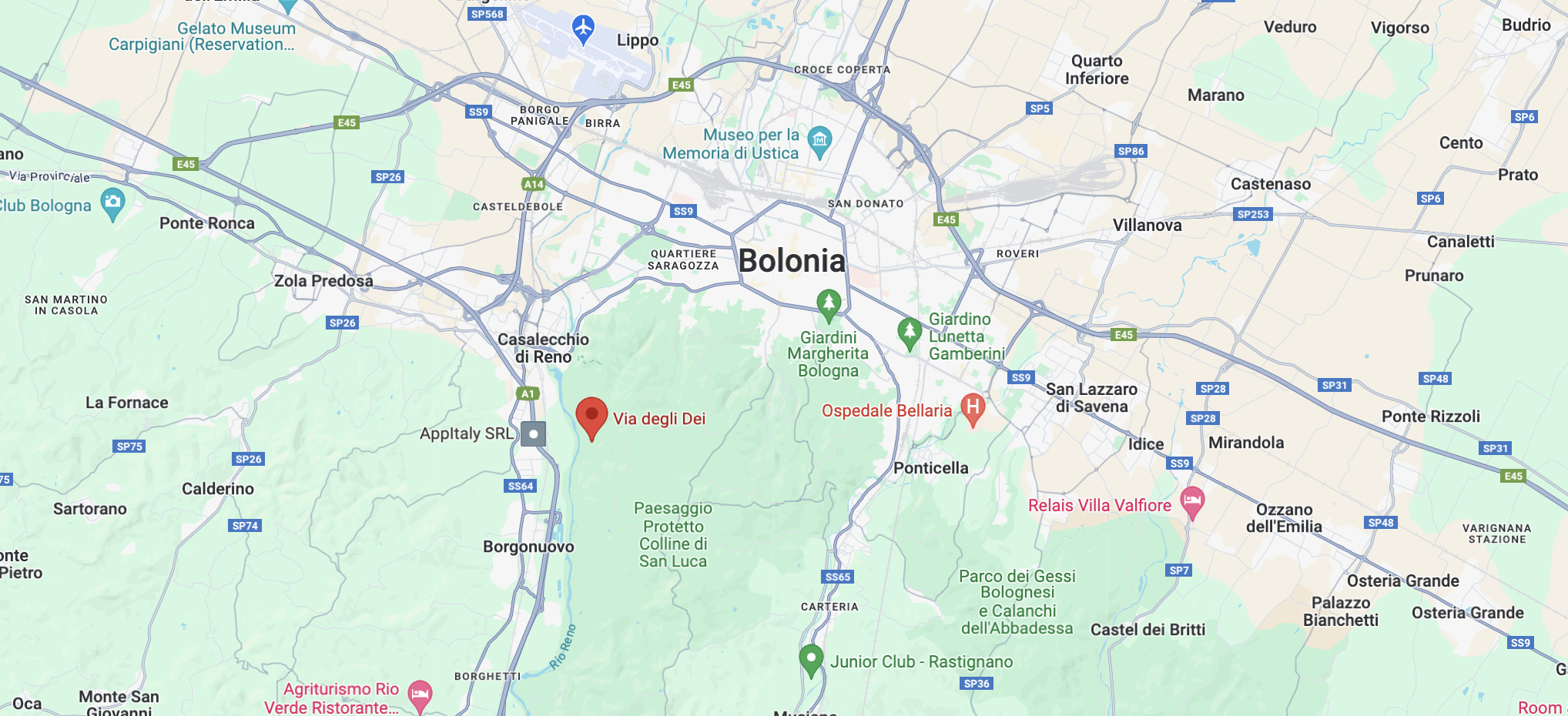 - Etapa 1: salida desde Bolonia, pasamos por San Luca, Casalecchio di Reno y llegamos a Sasso Marconi y al espectacular Puente de Vizzano.
